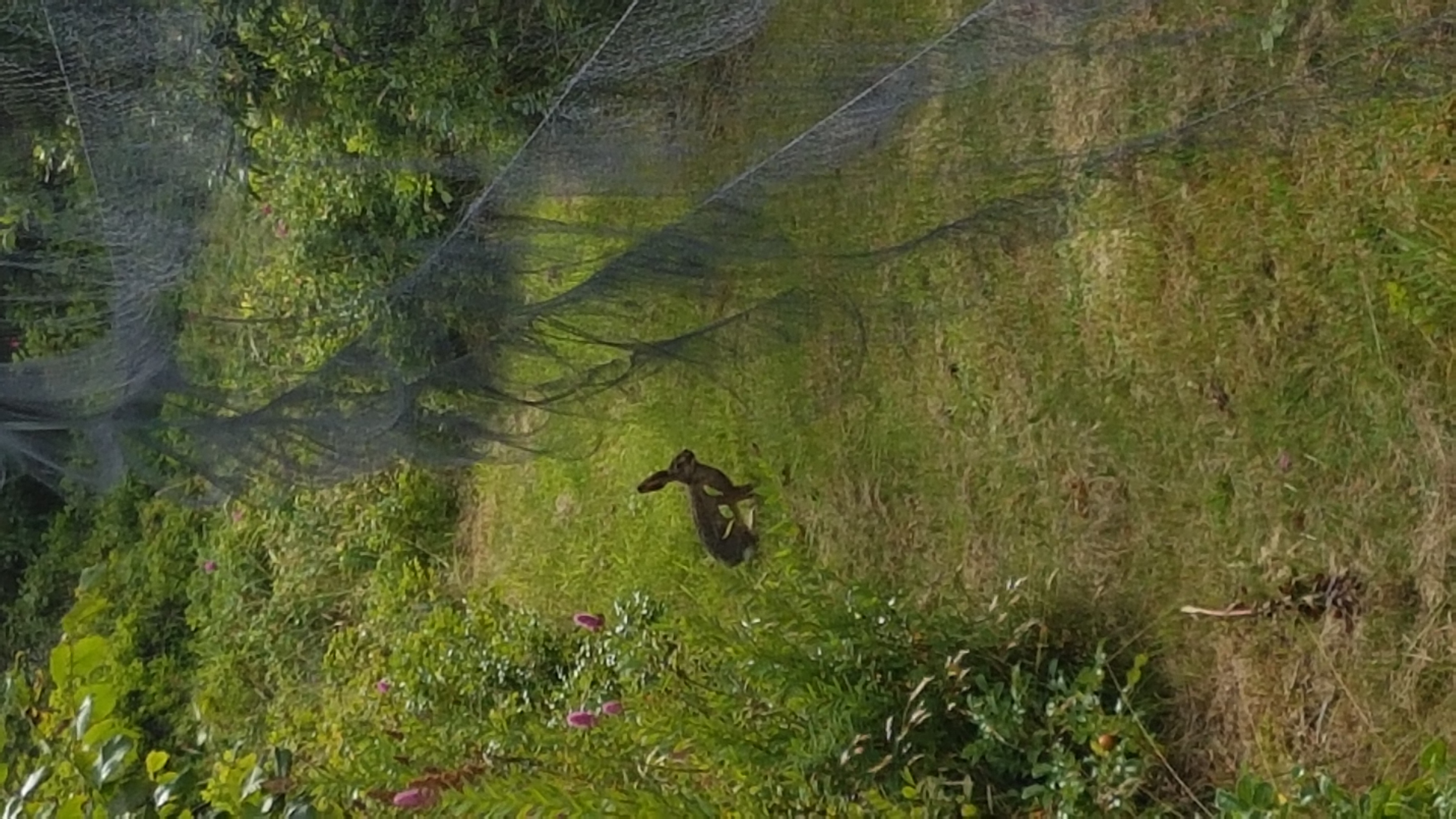 On most net rounds this morning in the light house garden, we were joined by a hare which kept fleeing from us down each net run!