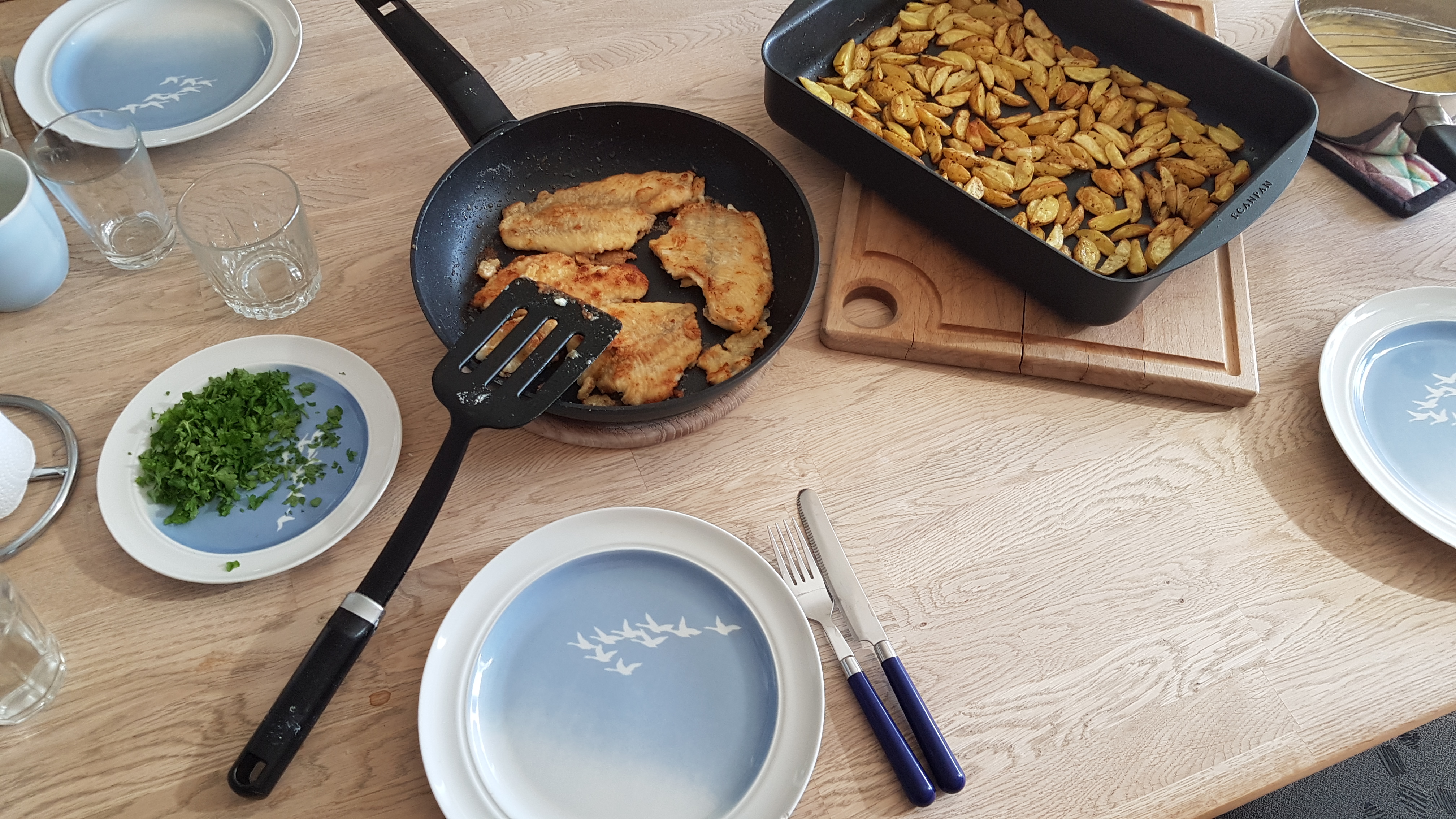 Aftensmaden stod på kartofler i ovnen samt fiskefiletter. Foto: Luke Nelson