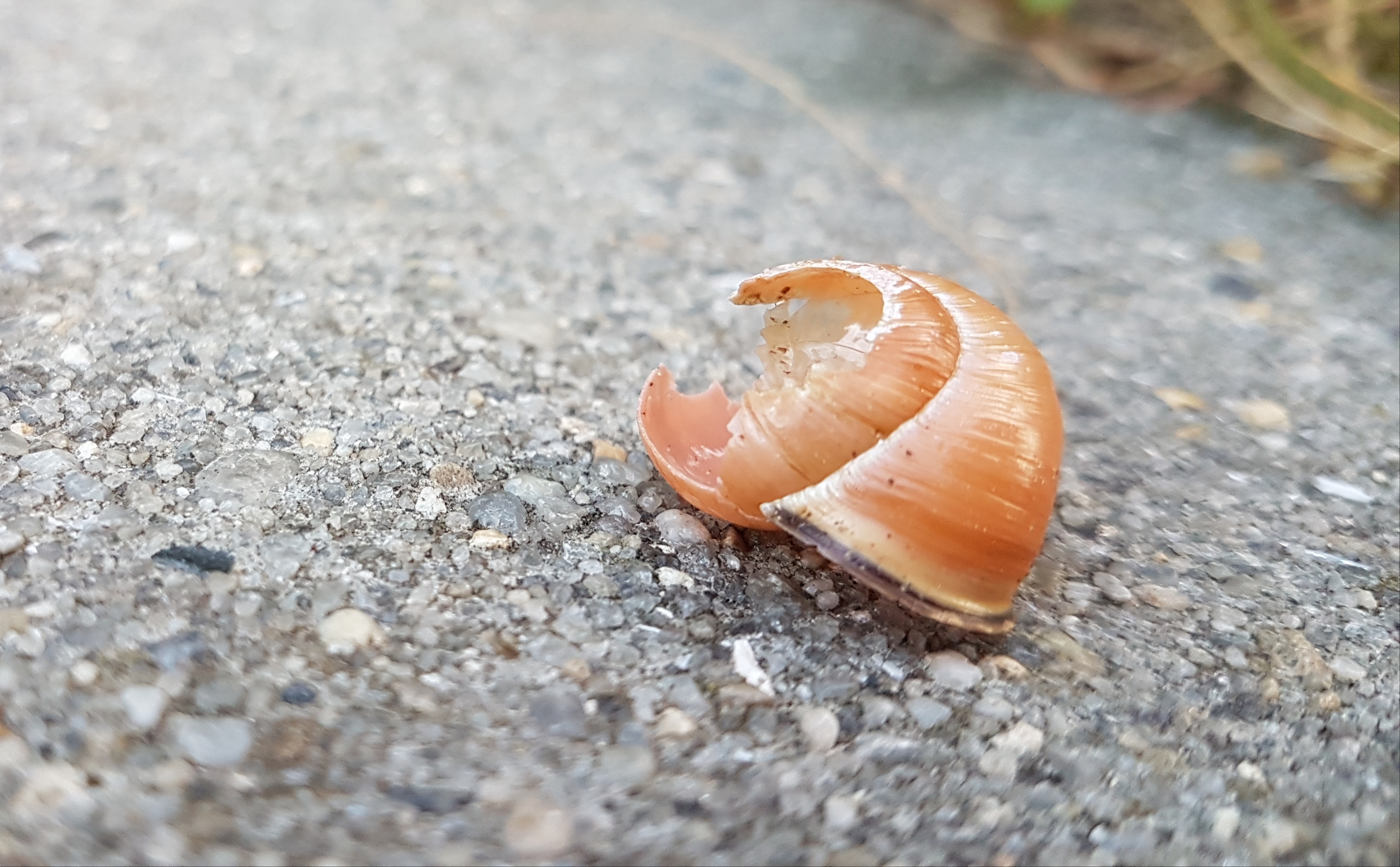 Snail shell broken by a Song Thrush on the ringing lab step. Photo: Luke Nelson
